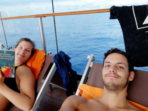 Die insgesamt 11 Tage auf See verbrachten wir mit Ausschlafen, dem Gestalten und fertig schreiben unseres Buches, Sport, jede Menge Essen und wenn es das Wetter zuliess; sonnenbaden und lesen auf Deck. Abends besuchten wir fast immer die Show um 22 Uhr und waren begeistert von den professionellen Tänzern und Sängern. Täglich gab es mehrere Aktivitäten, die für jeden Geschmack etwas dabeihatten. Zum Beispiel ein Vortrag über eine Destination, die wir gerade ansteuerten, Fussball auf dem Deck, Origami-Kurse, ein Spanisch- oder Tangokurs, viele Sport- und Tanzeinheiten, Spiele mit den Animateuren oder eine Bibliothek, die nicht nur viele Bücher anbot, sondern auch täglich neue Sudoku-Spiele. Meist vergingen die Tage so schnell, dass wir kaum Zeit hatten, das Buch aufzuschlagen.